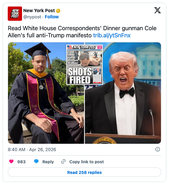 Along with publishing the manifesto, the New York Post also reported that Allen claimed membership in a far-left outfit called the Wide Awakes.