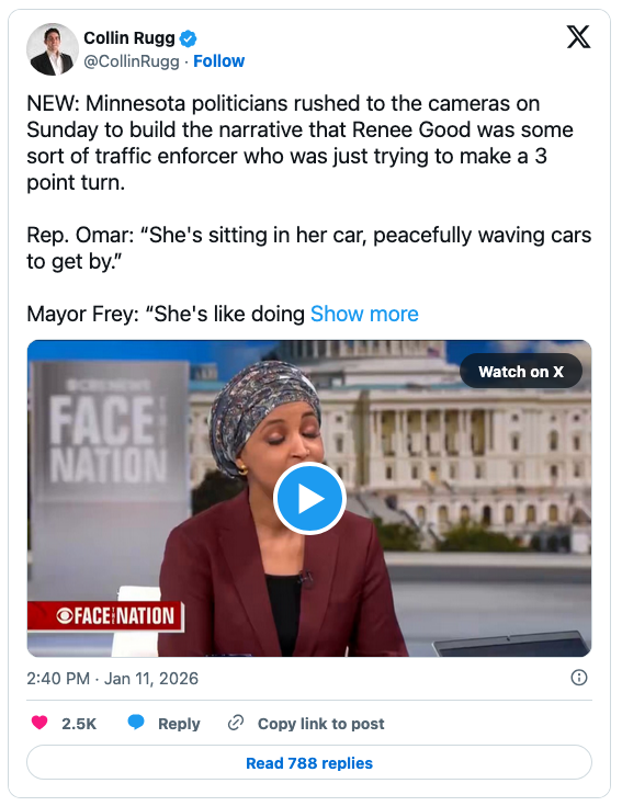 Far-left Democratic Representative Ilhan Omar of Minnesota pushed the fake narrative on CBS’s once-respected Face the Nation. Minneapolis Mayor Jacob Frey offered a similar take while speaking to CNN’s Jake Tapper.