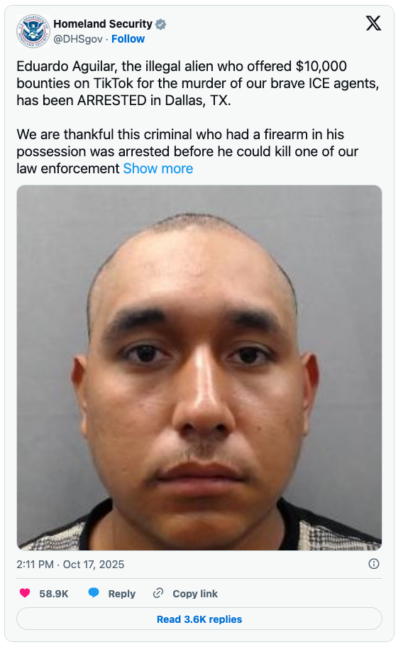 The three-tiered bounty system includes “$2,000 for gathering intelligence or doxxing agents (including photos and family details), $5,000-$10,000 for kidnapping or non-lethal assaults on standard ICE/CBP officers,” and “up to $50,000 for the assassination of high-ranking officials.”