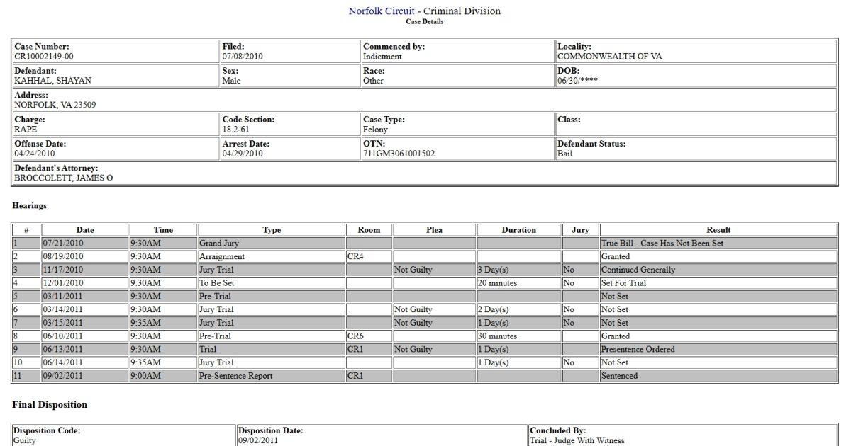 Virginia court records show three convictions: one for rape and two for forcible sodomy.