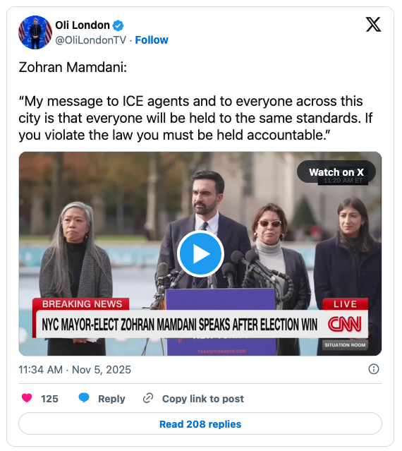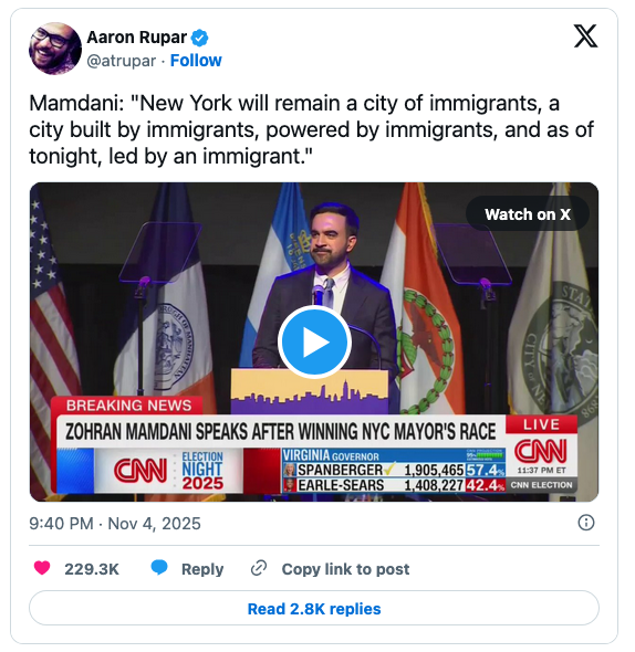 That said, Mamdani also averred that immigrants are now running New York City.