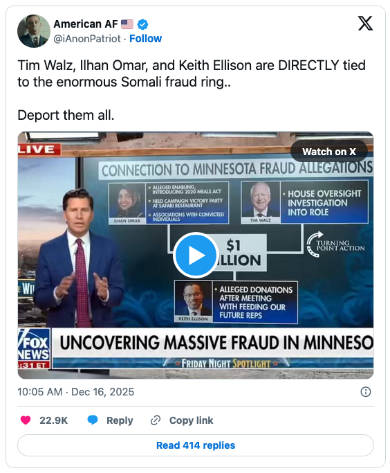 We’ve got the President of the United States demonizing our Somali neighbors and wrongly confiscating childcare funding that Minnesotans rely on.