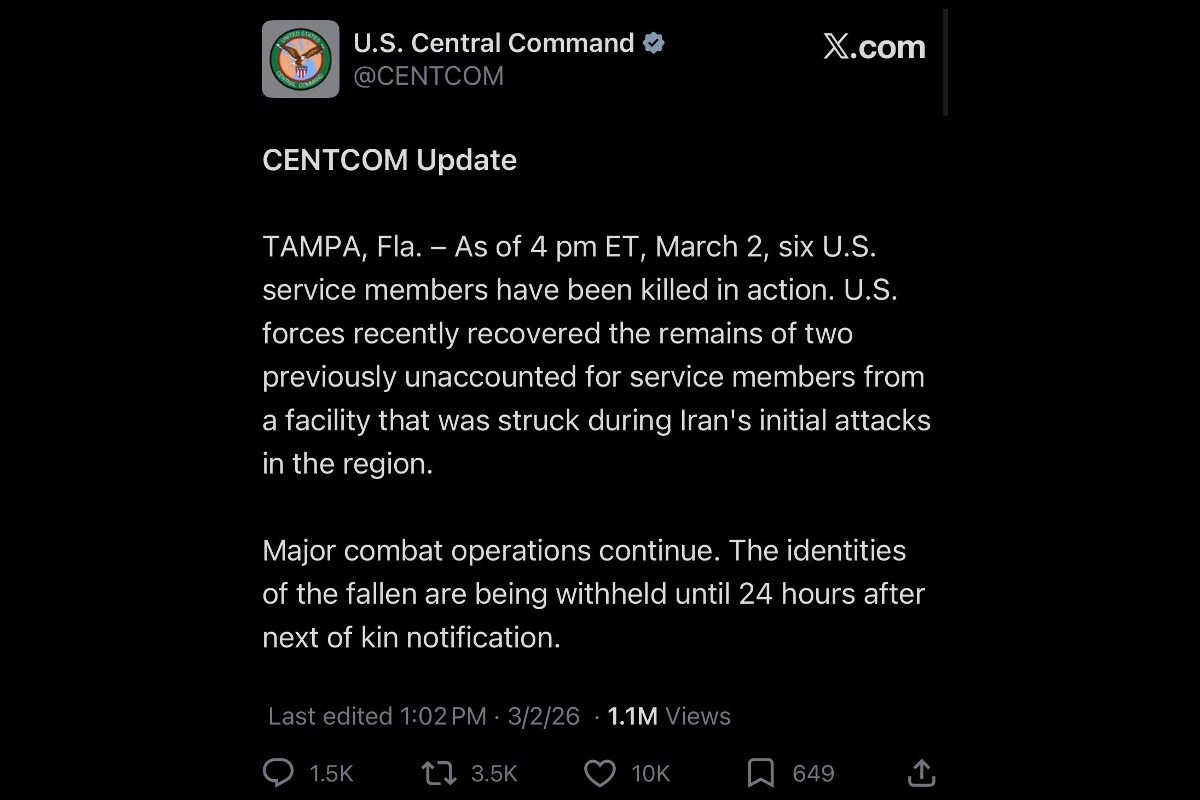 “Just so we’re all crystal clear: these servicemembers died because Israel decided to attack Iran,” a military veteran called Alex wrote over the Central Command’s announcement that six Americans had died: